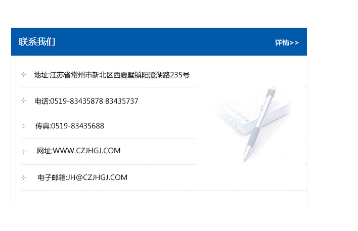 地址:常州市新北區(qū)友邦商務大廈1幢16、17層  電話:0519-85101652  傳真:0519-85112595  郵編:213022  網址:www.cz-jiayue_cn.sfsuye.com  郵箱:xiajifengaa@163.com